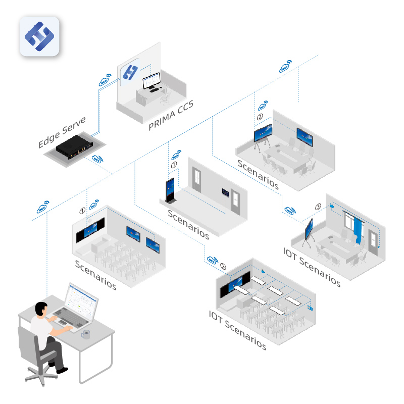 PRIMA’s Centralized Management System (CMS) offers a seamless, integrated solution for managing devices, content, and personnel across various environments. This powerful platform is designed for simplicity and efficiency, supporting multiple deployment options to meet the specific needs of your organization. With PRIMA CMS, you can manage everything from IoT devices to content displays, ensuring that operations are smooth and coordinated.   Key Features:   ♦ Remote Device Management and Operation Manage and control devices remotely from anywhere, anytime, enhancing operational efficiency.   ♦ Real-Time Monitoring and Alerts Track device performance and operational status in real time, receiving alerts for any abnormalities.   ♦ Comprehensive IoT Integration Seamlessly connect and control IoT devices for a unified, optimized experience. Example: Manage classroom environments effortlessly through the CMS platform – adjusting lights, audio systems, window blinds, digital signage, etc.   ♦ Cloud-Based System with Flexible & Secure Deployment Securely deploy and manage the system across private or cloud networks. Built-in security keeps your data safe at every step, and the system can still grow with your needs.   ♦ Visual Interface Simplified, intuitive interface for seamless operation and data visualization.   With its intuitive interface and robust features, PRIMA CMS is the perfect tool to elevate the management of commercial display environments, from educational institutions to corporate settings. Experience the future of digital signage and device management with PRIMA.