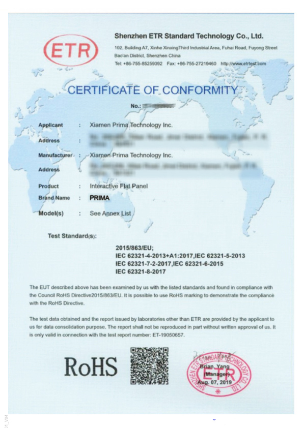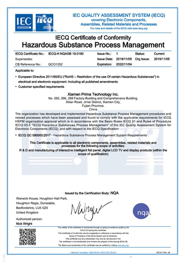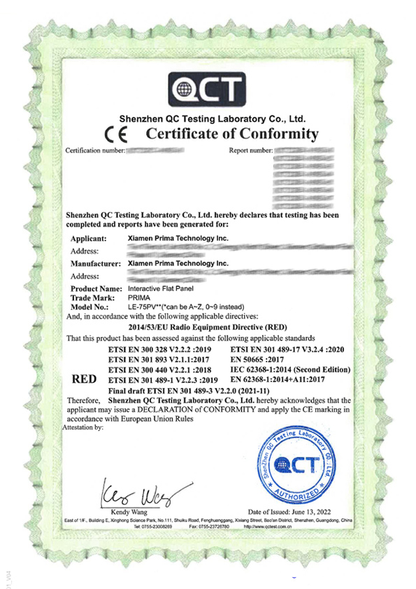 Prima has a perfect quality system, which can carry out corresponding third-party product certification according to different regional markets.
