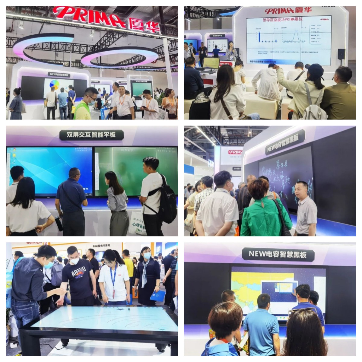 Accumulating steadily energy for a long time, PRIMA as one of the earliest enterprises to enter the LCD market, brings six major application scenarios for digital education at this exhibition, making a stunning appearance; new products such as capacitor interactive blackboards, 105 inch interactive flat panels, and dual screen interactive flat panels; strive to create multiple educational solution scenarios such as smart classrooms and digital campuses. The exhibition area integrates interactive scenes to create an immersive experience for visitors. The crowd on site is lively and numerous, and many visitors enthusiastically experience it. They stop to observe and engage in technical communication.
