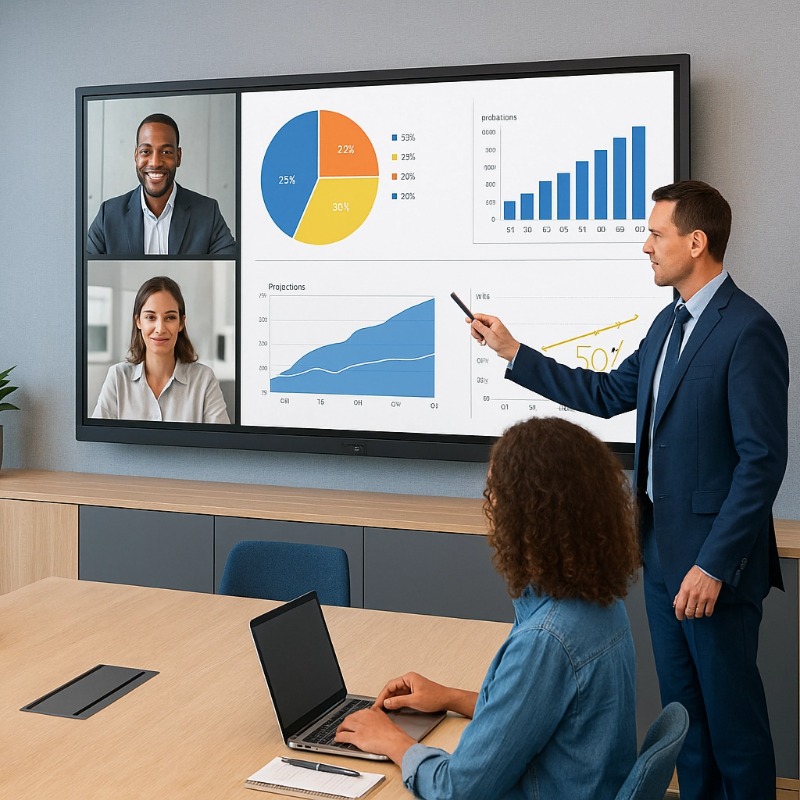 This shift calls for more than just screen-sharing. Organizations now seek smart, integrated display solutions that enable: