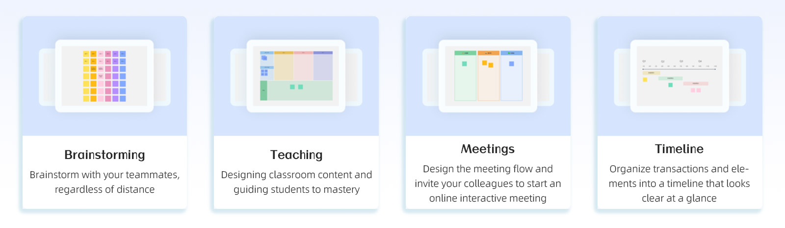 With UBoardMix, you can layout content, conduct online discussions, and optimize workflows and product plans. It can also be used as a virtual classroom, allowing educators to collaborate with colleaguesfor visual lesson preparation and class management, and students to collaborate withclassmates to complete and present group projects.